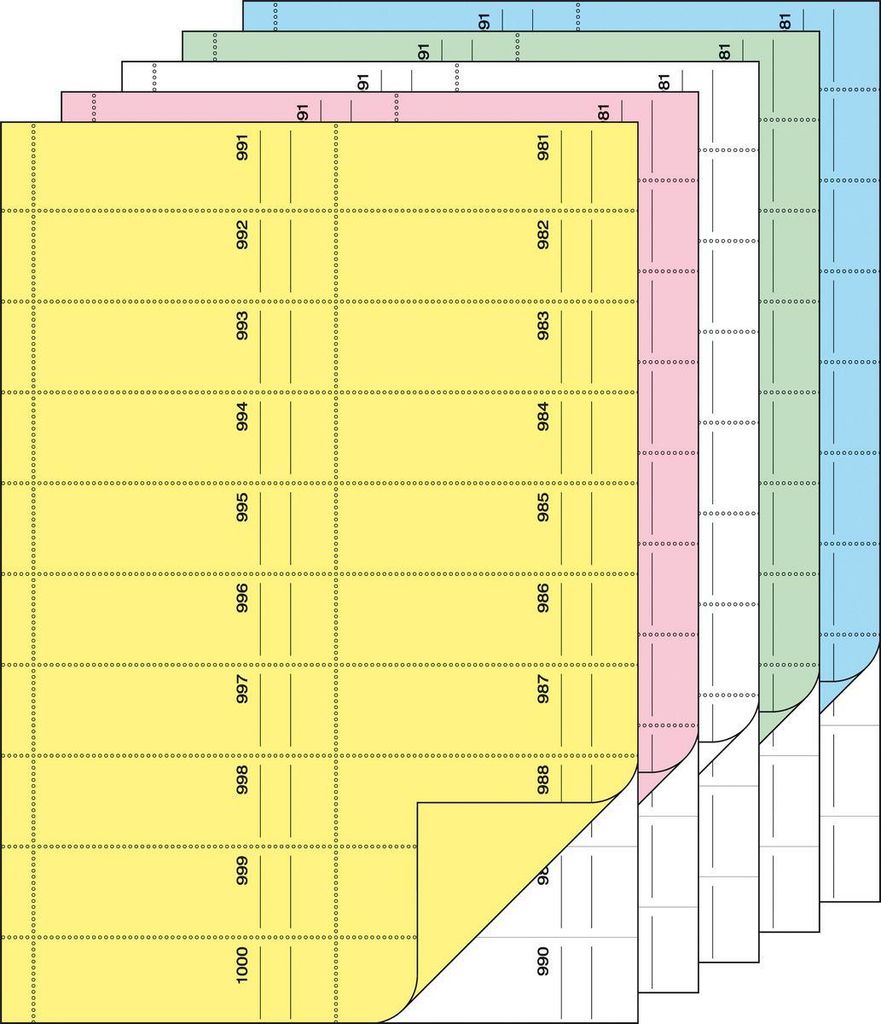 5 Bonbücher im Format A4, mit je 1000 Abrissen, 5 Farben (blau, rosa, gelb, grün und weiß) sortiert in einer Packung. Dank der hervorragenden Schnitt-Steg-Perforation lassen sich die Abrisse ganz einfach, schnell und ...