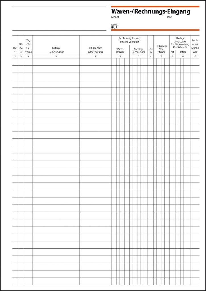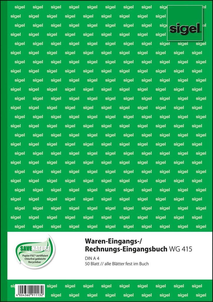 Waren-/Rechnungs-Eingangsbuch im Format DIN A4 mit 50 Blatt. FSC® zertifiziert, ...