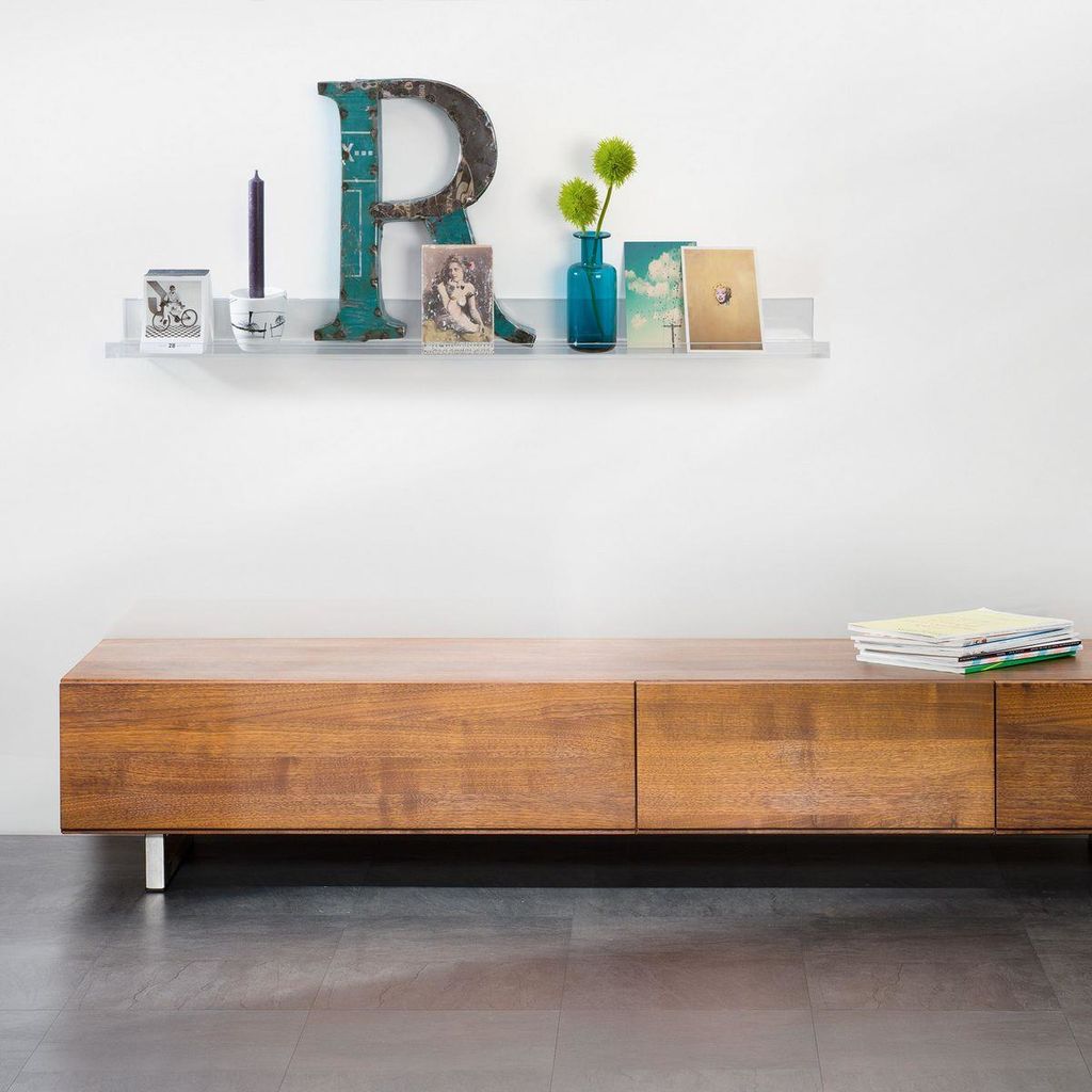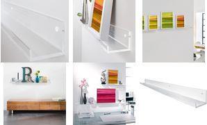 Galerieboard gallery aus transparentem, glasklarem Acryl zur Inszenierung von Bildern und Deko in der Länge 100 cm - ausgezeichnet mit dem Interior Innovation Award 2014. Das 5 mm starke Acryl-Material bietet eine breite Stellfläche von 70 mm. Die Tragkraft beträgt bis zu 10 kg. Im Lieferumfang enthalten sind das Galerieboard und Befestigungsmaterial.
