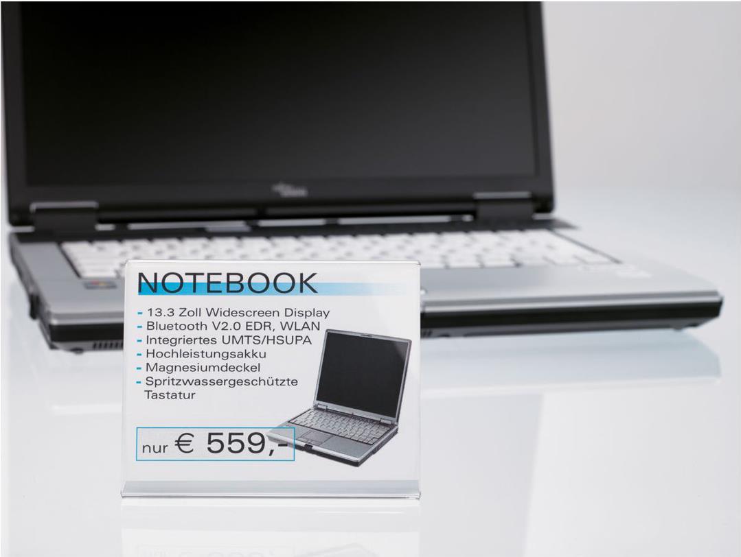 • sigel Info--Preisaufsteller, Acryl, 90 x 60 mm, schräg Tischaufsteller glasklar, einseitige Präsentation (PA107)