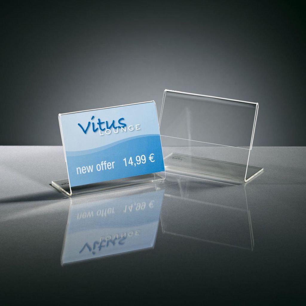 sigel Info--Preisaufsteller, Acryl, 90 x 60 mm, schräg Tischaufsteller glasklar, einseitige Präsentation (PA107)