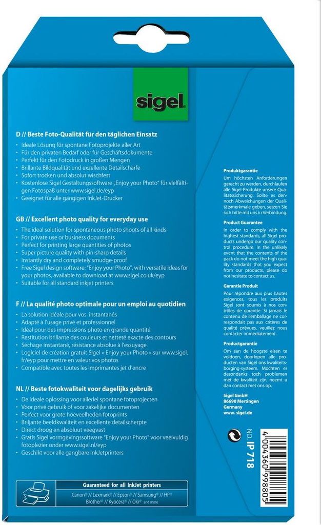 Produktbeschreibung Sige Everyday IP718 - Fotopapier - 24 Blatt