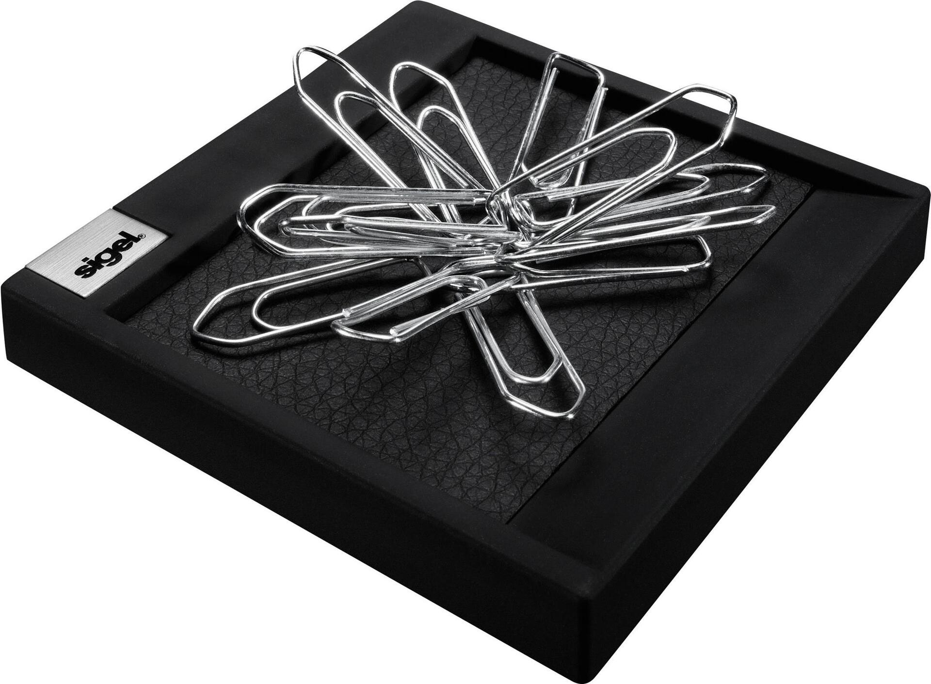 sigel Klammern-Spender "cintano:S", saphirschwarz Klammernhalter aus Lederimitat, zentraler Magnet (SA536)