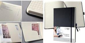 sigel Notizbuch "Conceptum", DIN A4 hoch, kariert, 97 Blatt edle "Softwave"-Oberfläche in schwarz, Seiten in chamois (CO111)