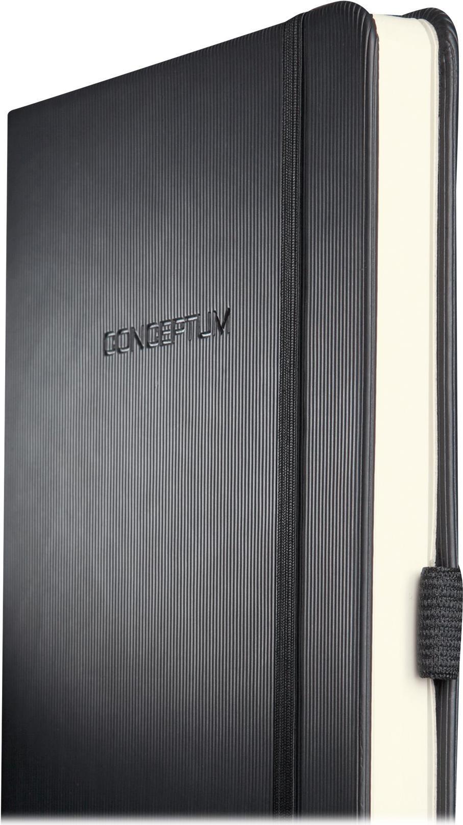 sigel Notizbuch "Conceptum", DIN A5 hoch, kariert, 97 Blatt edle "Softwave"-Oberfläche in schwarz, Seiten in chamois (CO121)