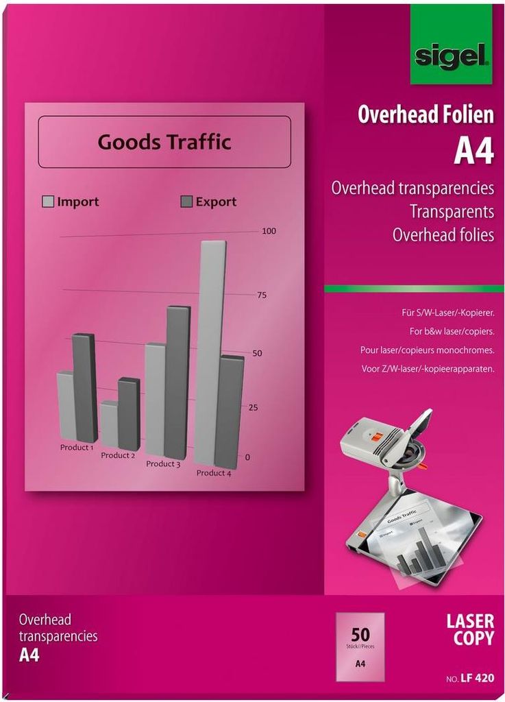sigel Schwarz-Weiß-Laserdrucker--Kopier-Folie, transparent (LF420)