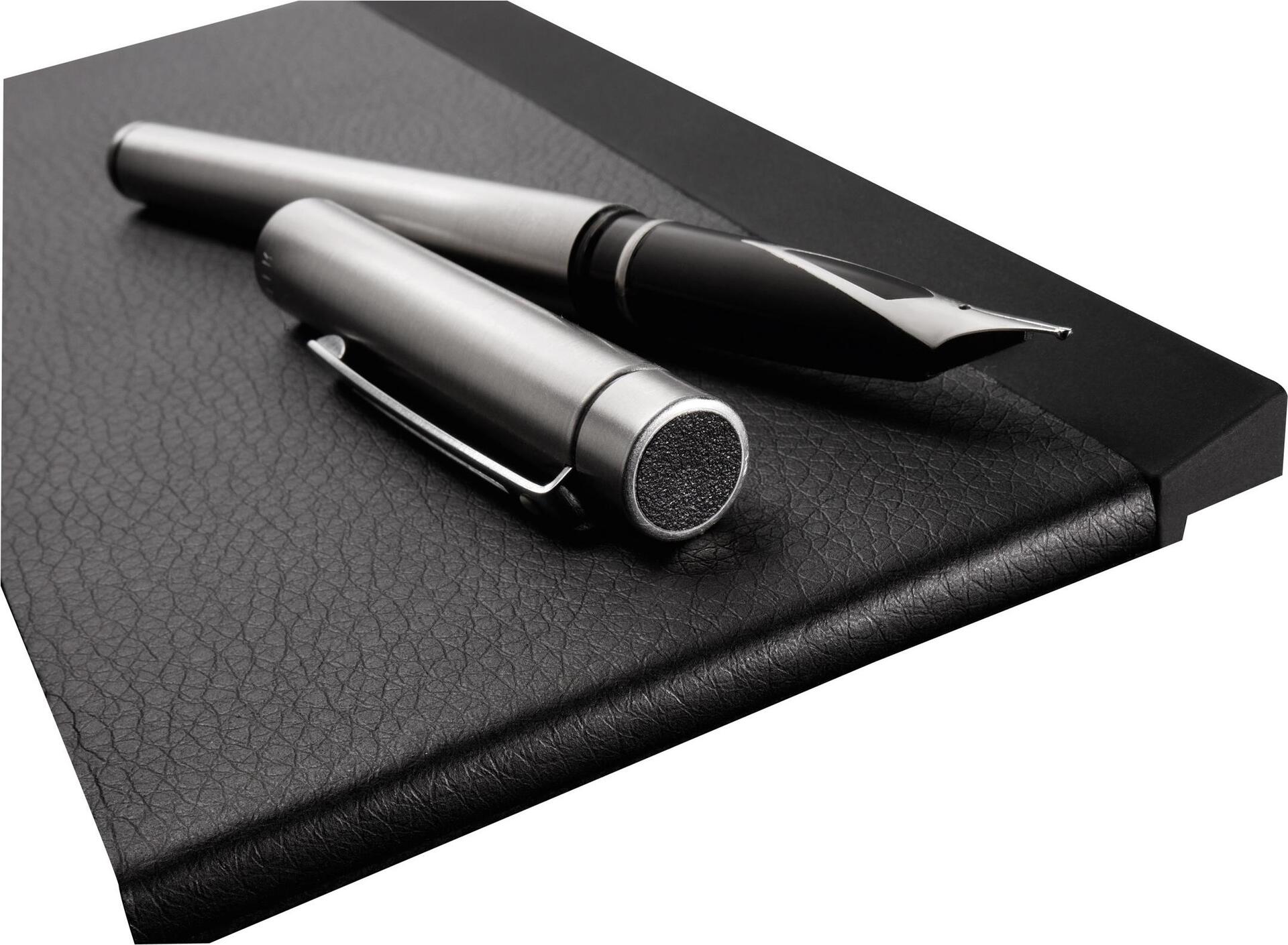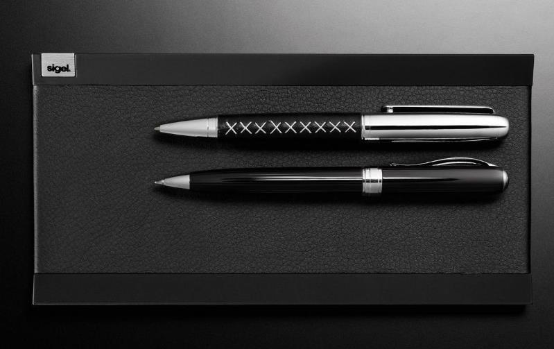 Schwarze Stifteschale aus hochwertigem, feingeprägtem Lederimitat und haptisch erfahrbarem, mit Soft-Touch beschichtetem ABS-Kunststoff in sportivem, zeitlosem Design. Zur repräsentativen Ablage von Schreibgeräten, sehr komfortabel in der Benutzung durch rutschfeste Unterseite und abgeschrägte Längskanten, die ein Herunterrollen der Stifte unmöglich machen. Besonders möbelschonend aufgrund des hochwertigen Mikrofaserstoffs, der auf der Unterseite angebracht ist. Sigel gewährt 2 Jahre Garantie auf diesen Artikel bei Beachtung der beigelegten Pflege- und Gebrauchshinweise. Die Größe der Stifteschale beträgt 20 x 1,1 x 10 cm (B x H x T).