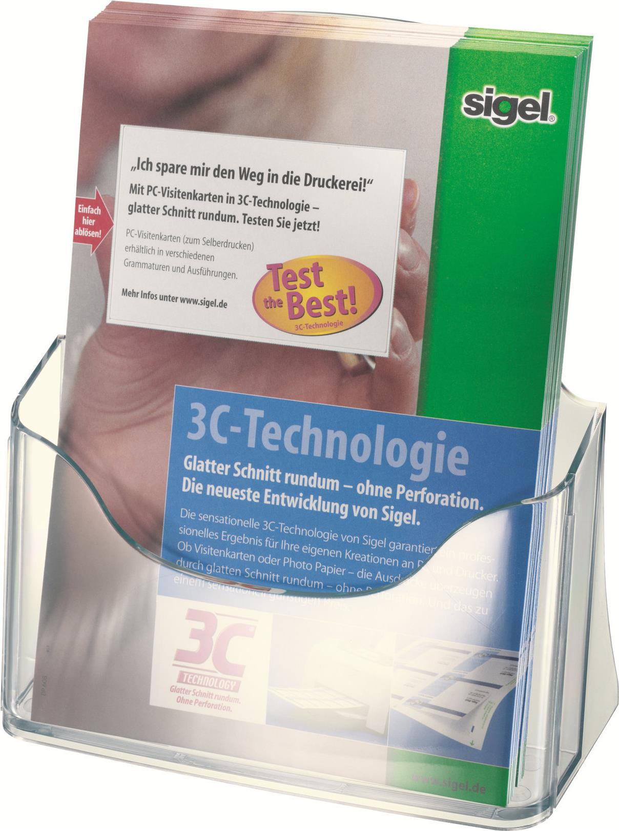 sigel Tisch-Prospekthalter, Acryl, DIN A5, mit 1 Fach glasklar, Fülltiefe: 30 mm, auch für Wandbefestigung (LH112)