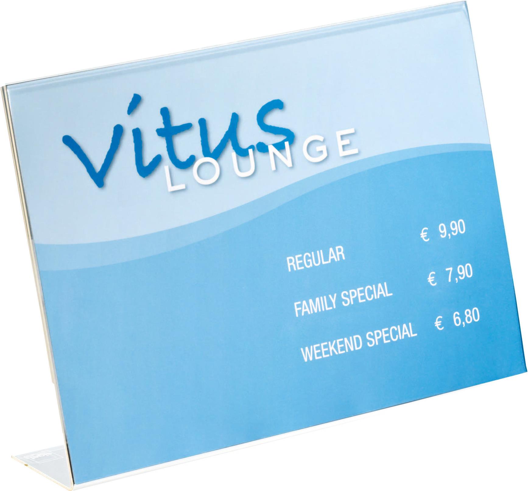 sigel Tischaufsteller, Acryl, DIN A4 quer, schräg, glasklar für einseitige Präsentation, besonders standfest (TA211)