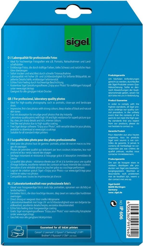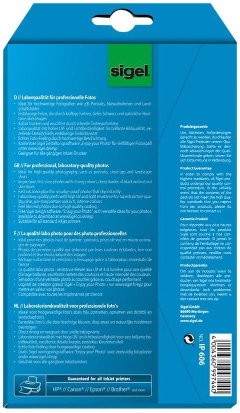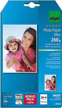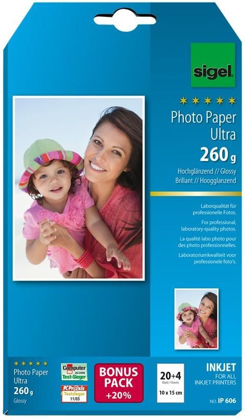 Sigel InkJet Ultra Photo Paper IP606 with Print-Tab - Glänzend - Glänzend Weiß - 100 x 150 mm - 260 g/m² - 24 Blatt Fotopapier (IP606)