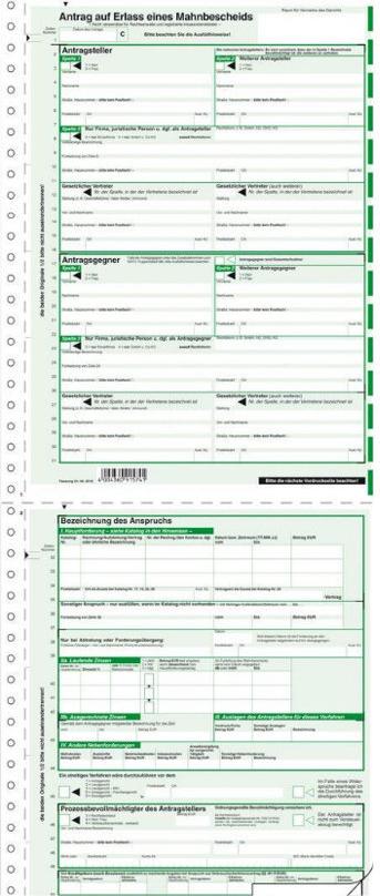 sigel Vordruck "Mahnbescheid", A4, SD, 2 x 2 Blatt - für den Markt: D - 25 Stück (MA441)