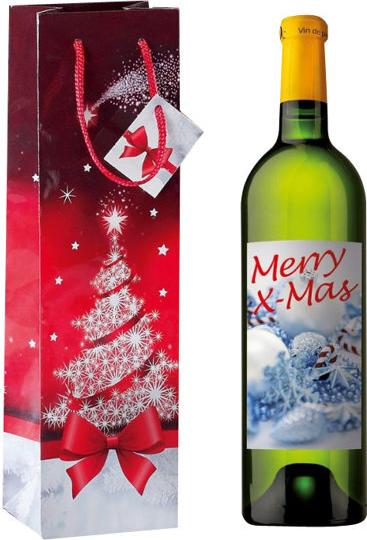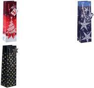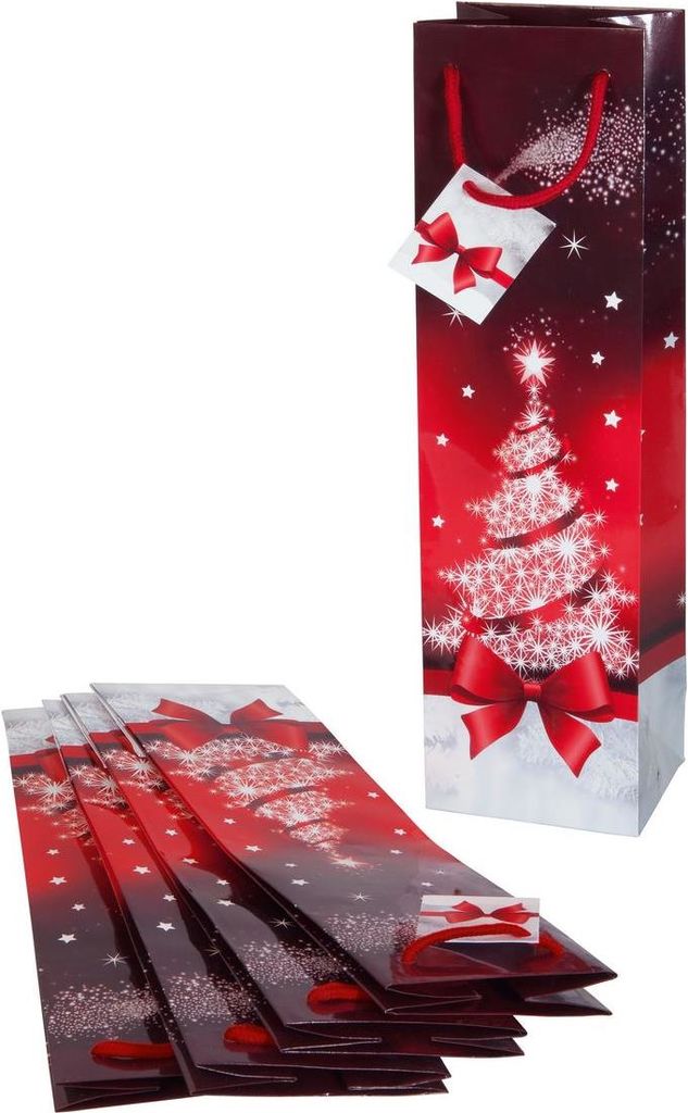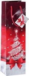 Weihnachts-Geschenktasche Bottle im Design "Sparkling Tree" mit Glanzlackierung. Die Tasche mit leuchtendem Weihnachtsbaum vor rotem Hintergrund verfügt über farbig abgestimmte Tragekordeln und einen passenden ...