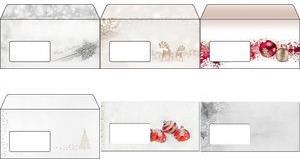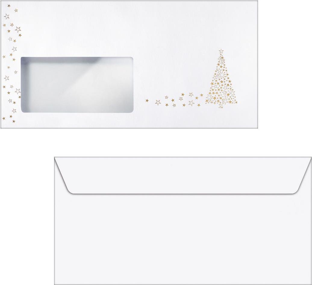 50 Briefumschläge in modernem Weihnachtsdesign, Format DIN lang, gummiert, mit Fenster