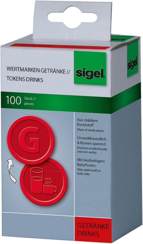 sigel Wertmarken "Getränke", aus Kunststoff, rot Getränkemarken aus PP, Durchmesser: 25 mm (WM006)