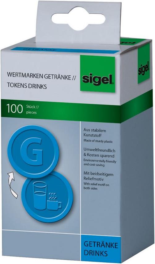 sigel Wertmarken "Getränke", aus Kunststoff, blau Getränkemarken aus PP, Durchmesser: 25 mm (WM007)