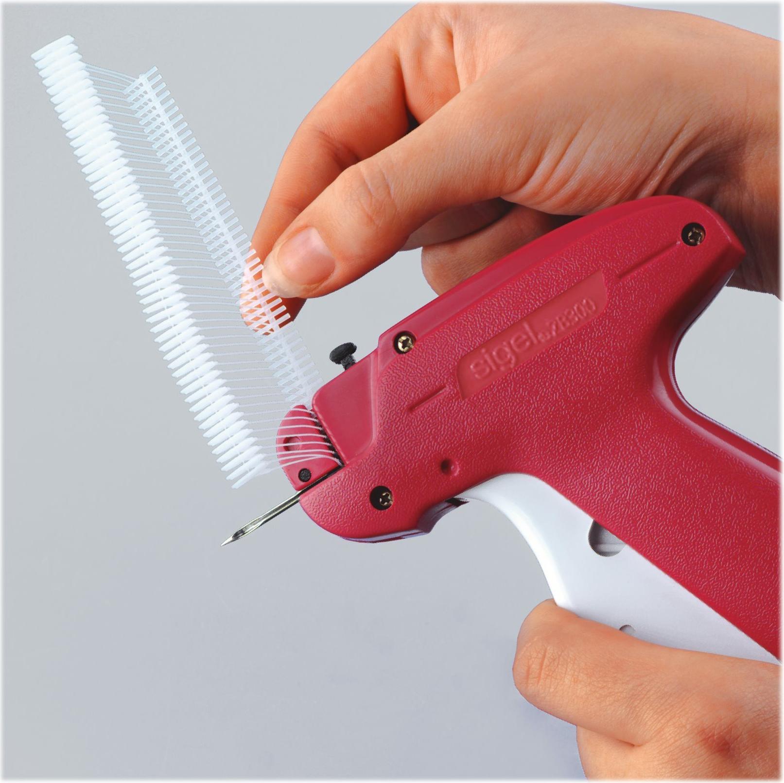 Anschießfäden für Anschießpistolen aus reißfestem, farblosem Nylon, 45 mm lang. Zur schnellen und dauerhaften Befestigung von Preisen oder Informationen an der Ware, Inhalt 2000 Stück. Die passende Anschießpistole ZB300 ist bei Sigel erhältlich.