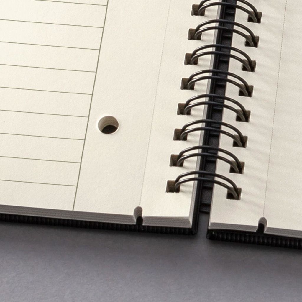 Alle Blätter mit 4-fach Lochung sowie Mikroperforation mit Ausreißhilfe zum sauberen Heraustrennen. Die stabile Metall-Doppelspirale erlaubt, dass der Block plan liegt und um 360 Grad umgeschlagen werden kann. Quickpocket im hinteren Einband. Die Größe des Blocks ist ähnlich DIN A4.
