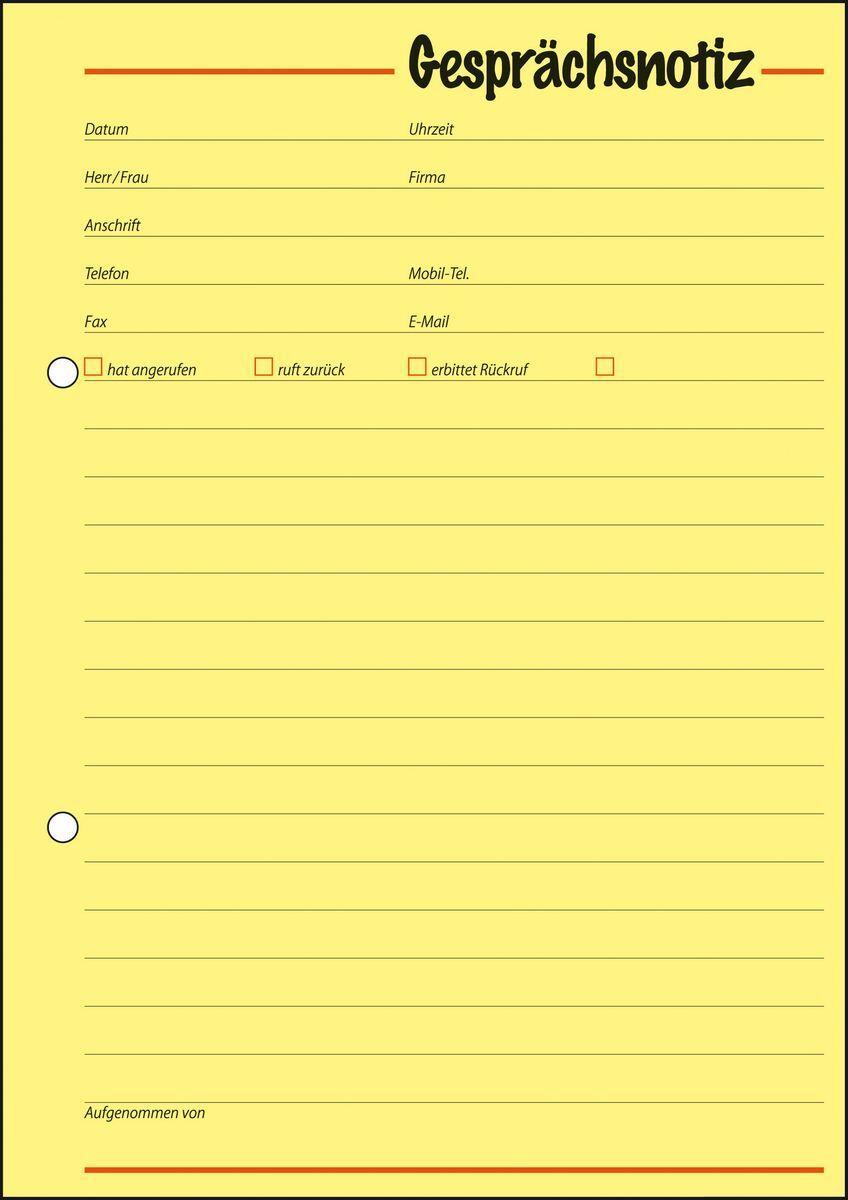 Gesprächsnotiz im Format DIN A5 mit 50 Blatt in gelb, FSC zertifiziert. Informationen können schnell und präzise erfasst werden.