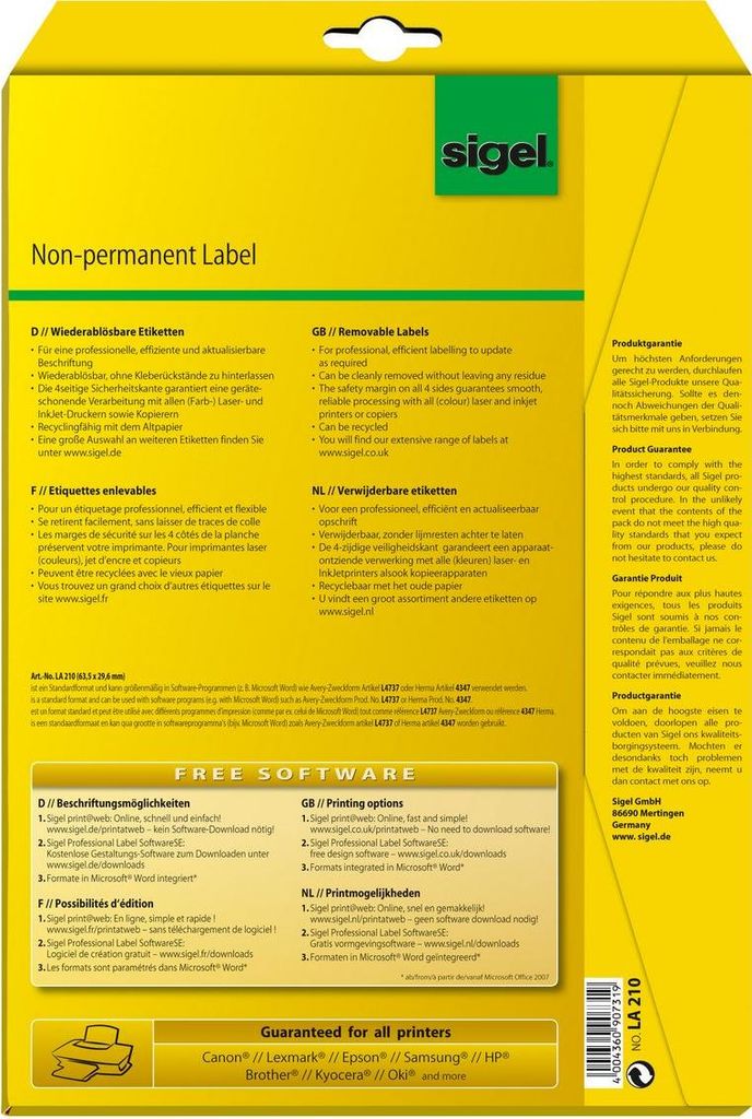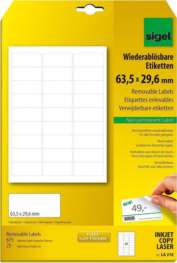 Sigel LA210 Abgerundetes Rechteck Entfernbar Weiß 675Stück(e) selbstklebendes Etikett (LA210)