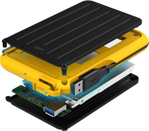 SILICON POWER Armor A66 - Festplatte - 2TB - extern (tragbar) - USB 3,2 Gen 1 - Schwarz/Gelb (SP020TBPHD66SS3Y)