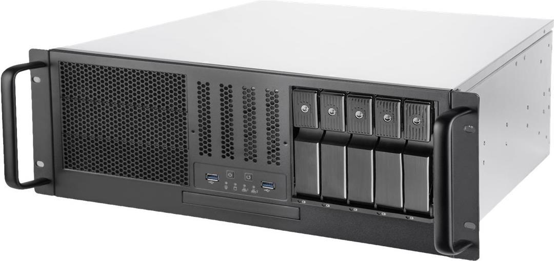 Das RM41-H08 ist ein vollständiges hochleistungsfähiges Servergehäuse von SilverStone. Das Design der Frontblende unterstützt fünf Hot-Swapping-fähige 3,5-Zoll-SAS/SATA-Festplatten, die Übertragungsgeschwindigkeiten betragen bis zu 12 Gbit/s und unabhängige LED-Leuchten zeigen Nutzern den Status der einzelnen Festplatten auf einen Blick. Zur Gewährleistung der Datensicherheit ist jedes Hot-Swapping-fähige Gerät mit einem einzigartigen Diebstahlsicherungsschloss ausgestattet. Die Frontblende ist außerdem mit drei 5,25-Zoll-Einschüben ausgestattet und unterstützt Server-Motherboards bis SSI-CEB. Das flexible Netzteil-Multihalterungs-Verriegelungsloch ist für die meisten redundanten Mini-Netzteile ausgelegt. Das RM41-H08 hat zudem vordere und hintere 80-mm-Lüftersteckplätze zur Förderung eines effizienten serverorientierten Luftstroms. Für Experten und Techniker, die in Serverräumen arbeiten, ist das RM41-H08 dank seines hochgradig flexiblen Layouts und seiner soliden Konstruktion eine ausgezeichnete Wahl.