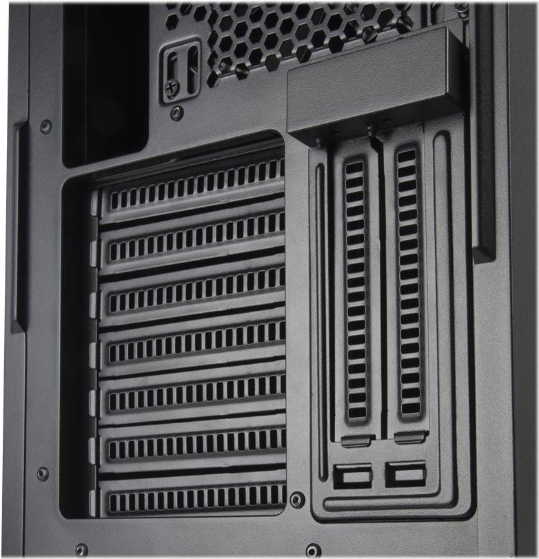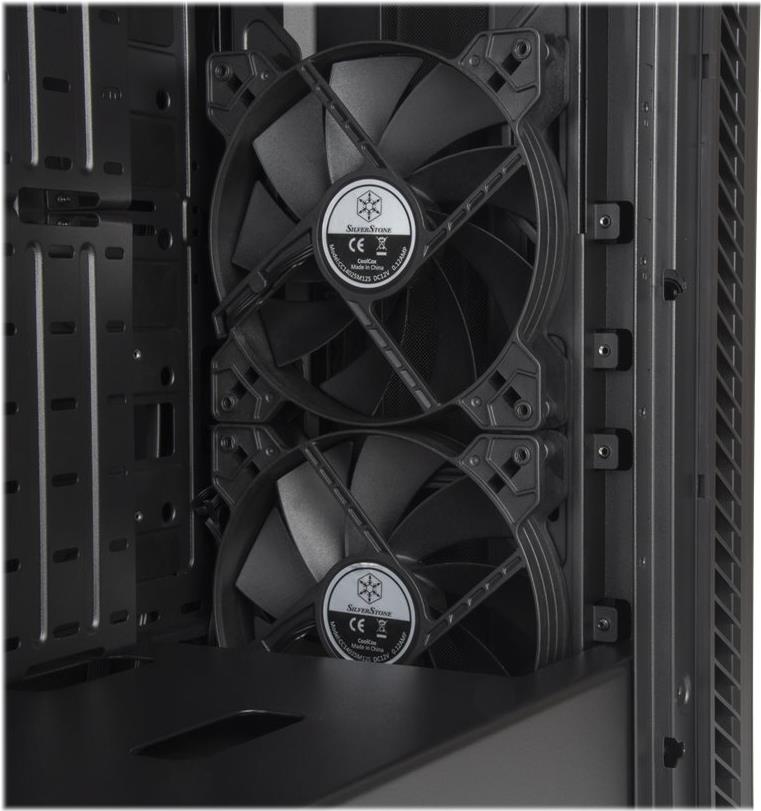 | Kühlsystem | Vorderseite: 140 mm Lüfter x 2 / schwarz Rückseite: 140 mm Lüfter x 1 / schwarz Vorderseite: 120/140 mm Lüfterhalterung x 3 Rückseite: 120/140 mm Lüfterhalterung x 1 Oberseite: 120 mm Lüfterhalterung x 3 / Unterstützung für 2 140-mm-Lüfter |