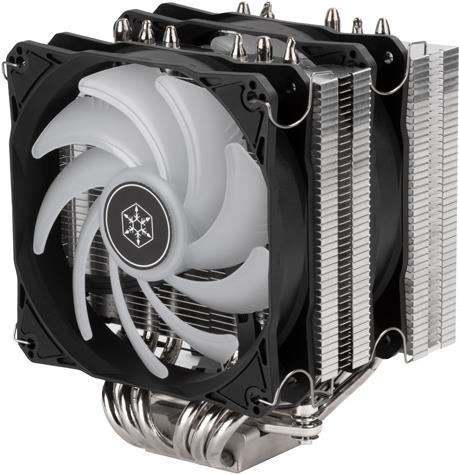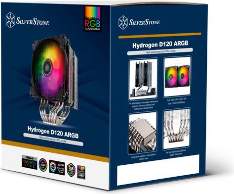 SilverStone hat einen CPU-Kühler für die Serie Hydrogon, den Hydrogon dual 120 ARGB herausgebracht, bei dem es sich um einen Dual-Tower-CPU-Kühler mit dualen Lüftern zum Betrieb mit leistungshungrigen Intel- und AMD-Prozessoren handelt. Er ist mit 6 hocheffizienten Kupfer-Wärmerohren mit einem einzigartigen Offset-Kühlkörper-Lamellendesign ausgestattet, das ausgezeichnete Wärmeleitfähigkeit und Kompatibilität ohne Behinderung von Speichermodulen für alle kompatiblen Plattformen ermöglicht. Die beiden mitgelieferten Lüfter sind PWM-gesteuerte 120-mm-Lüfter mit 9 Flügeln und einem Lüfterdrehzahlbereich von 0 bis 1850 U/min, die große Mengen Luft durch den Kühlkörper leiten können. Wie der Name bereits vermuten lässt, haben die Lüfter integrierte ARGB-Lichteffekte mit 8 ARGB-LEDs, die über ARGB-Controller oder kompatible Motherboards entsprechend Ihren Vorlieben gesteuert werden können. Die Lüfter verfügen zudem über eine integrierte Gummipolsterung zur weiteren Reduzierung von Vibrationsgeräuschen; daher ist für Nutzer, die einen leistungsfähigen Lüfter mit wunderschöner ARGB-Beleuchtung wünschen, der HYD120-ARGB die perfekte Wahl.