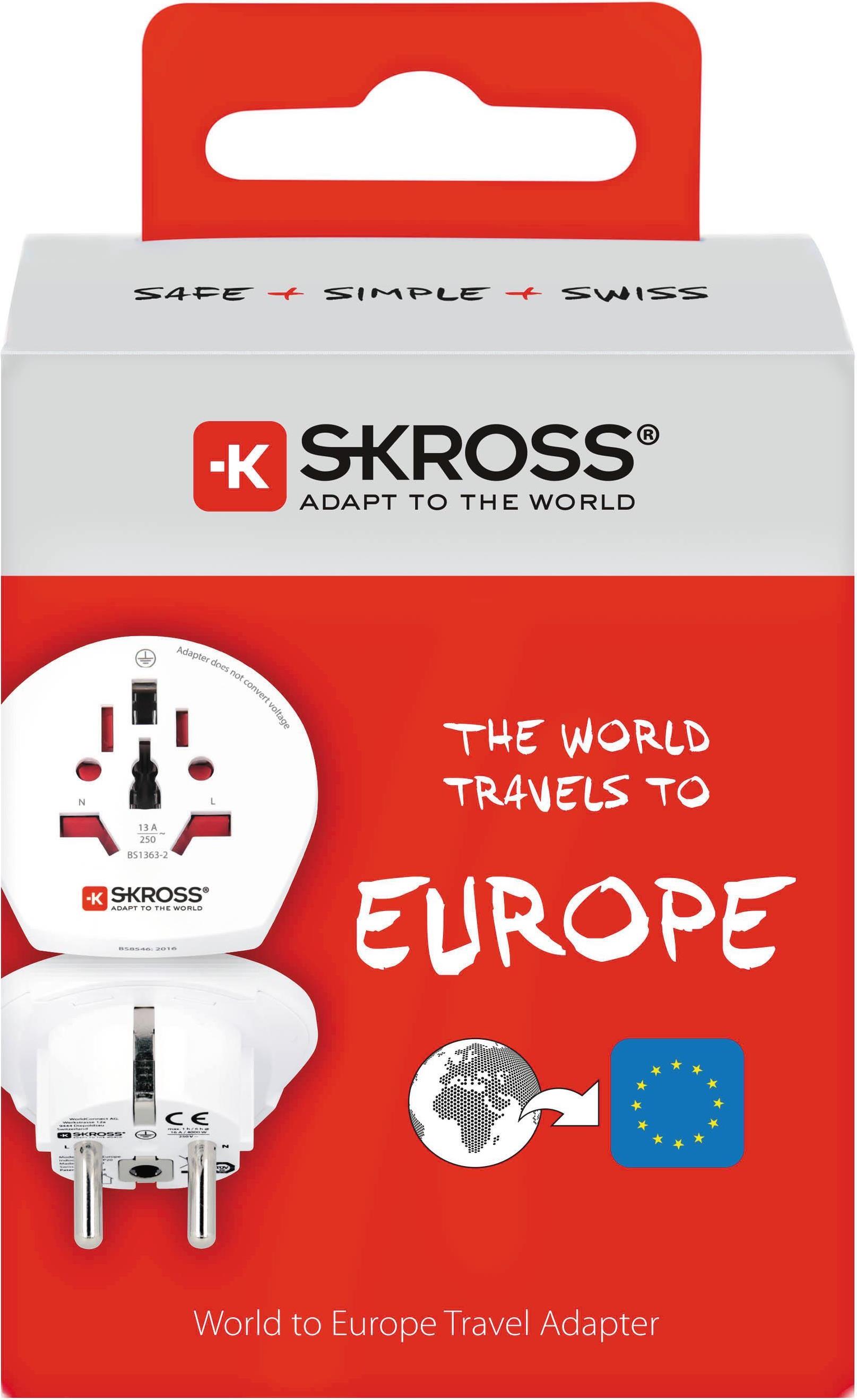 SKROSS Länderstecker Europe to UK Grossbritannien, ich komme! Der Länderstecker Europe to UK ist ideal, wenn Sie in Länder mit britischem Steckdosenstandard reisen. So können Sie vor Ort alle Ihre 2- und 3-poligen Geräte mit Schutzkontakt- bzw. Euro-Stecker anschliessen. (1500230 E)