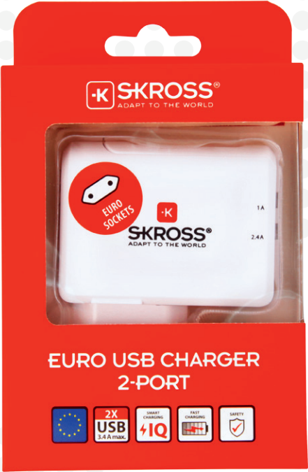Dieses geniale USB-Ladegerät für alle europäischen Steckdosen macht dein Leben mit seinen 2 USB-Schnittstellen einfacher! Ideal, um zwei USB-Geräte gleichzeitig zu laden.Produkttext[/head]Für volle Akkus sorgt der Euro USB Charger – 2-Port von SKROSS®. Die 2 USB-Hubs ermöglichen das gleichzeitige Laden von 2 Geräten in allen Ländern, in welchen der Eurostecker verwendet werden kann. Somit ist er ideal, um Smartphone, Tablet und andere USB-Geräte in über 160 Ländern dieser Welt zu laden[head]Hauptmerkmale