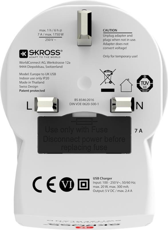 | Produktbeschreibung | SKROSS Country Travel Adapter Europe to UK USB - Netzteiladapter mit USB-Ladegerät |
