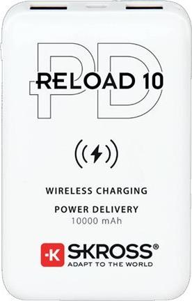 Skross RELOAD 10 Qi PD. Produktfarbe: Weiß, Aufladekompatibilität: MP3/MP4, Handy/Smartphone, Tablet, Form: Rechteck. Batteriekapazität: 10000 mAh, Aufladequelle: USB, Batteriekapazität (Wattstunden): 37 Wh. Input Anschluss: Micro-USB + USB Type-C. Breite: 63 mm, Tiefe: 22 mm, Höhe: 100 mm. Verpackungsbreite: 80 mm, Verpackungstiefe: 28 mm, Verpackungshöhe: 170 mm (1.400132)