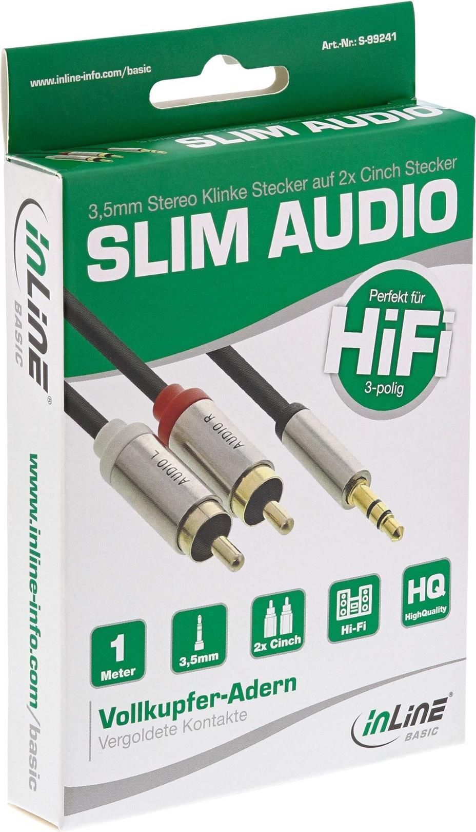 Dieses Slim Audio Kabel ist perfekt geeignet um z. B. Smartphones an eine HiFi-Anlage anzuschließen. Die dünne Bauart mit schmalen Steckern gewährt ein hohes Maß an Flexibilität. Vollkupfer-Adern und robuste Stecker mit vergoldeten Anschlüssen kitzeln die beste Leistung aus den Endgeräten heraus.• Flexible PVC-Rundkabel, ideal für HiFi-Anwendungen• Vollkupfer-Adern für beste Signalqualität• Zum Verbinden von Audiogeräten• Robuster und schmaler Metallstecker• Vergoldete Kontakte• Stereo Belegung, 3-polig• InLine Retail-Verpackung