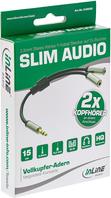 Die InLine® Slim Audio Cables sind Ihr idealer Begleiter auch für zwei!Mit diesem typischen Y-förmigen Verteilerkabel können Sie den Audioausgang eines MP3-Players, Smartphones oder eines anderen Geräts aufteilen, so dass Sie 2 Kopf- oder Ohrhörer anschließen können. Teilen Sie Ihre Lieblingsmusik mit wem immer Sie wollen! Diese extra dünnen, hochflexiblen Kabel sind mit platzsparenden Slimline-Steckern ausgestattet. Genießen Sie Freiheit ohne Kompromisse bei der Klangqualität. Reine Kupferdrähte und vergoldete Stecker sorgen für die beste Leistung Ihrer persönlichen Geräte.• Extra dünnes und flexibles Slim Y-Audio-Splitterkabel in Mobilqualität• Klinke 3,5 mm Stecker auf 2x Klinke 3,5 mm Buchse• Klinkenstecker mit 3 Kontakten (Pole) für Stereosignale• Robuste, schlanke, vernickelte Metallstecker mit vergoldeten Kontakten• Kabel mit reinem Kupferdraht für verbesserte Signalqualität• Flexibles schwarzes PVC-Rundkabel, ideal für den Einsatz unterwegs