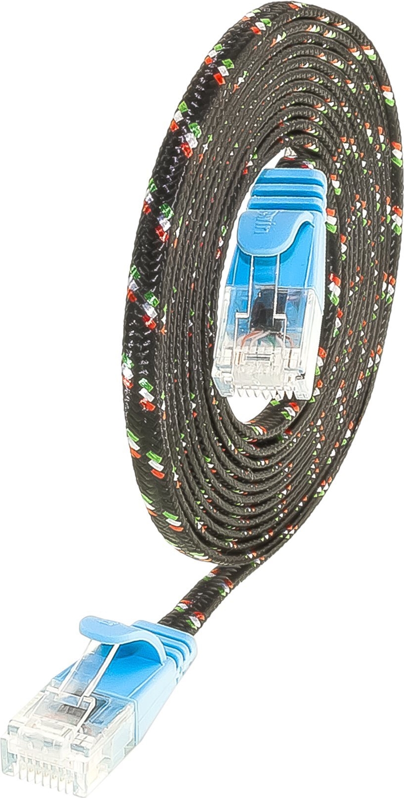 Die TOUGHpatchkabel der Marke SLIM sind eine Lösung für Verkabelungsprobleme verschiedener Art. Obwohl optisch einem Flachbandkabel recht ähnlich, erreichen die TOUGHpatchkabel die Werte der Kategorie 6 und sind somit für 10BASE-T-, 100BASE-TX- und 1000BASE-T Anwendungen, also auch Gigabit Ethernet, geeignet. Dabei haben ganze drei SLIMpatchkabel den Durchmesser eines einzigen handelsüblichen KAT6 Patchkabels. Das Kabel weist trotz der extrem dünnen Bauweise eine Verdrillung der einzelnen Adernpaare auf. Zudem besitzt es einen breiten, flexiblen Klinkenschutz sowie einen praktischen Längenaufdruck an beiden Enden und unterstützt Power over Ethernet (PoE nach IEEE802.3af und IEEE802.3at).