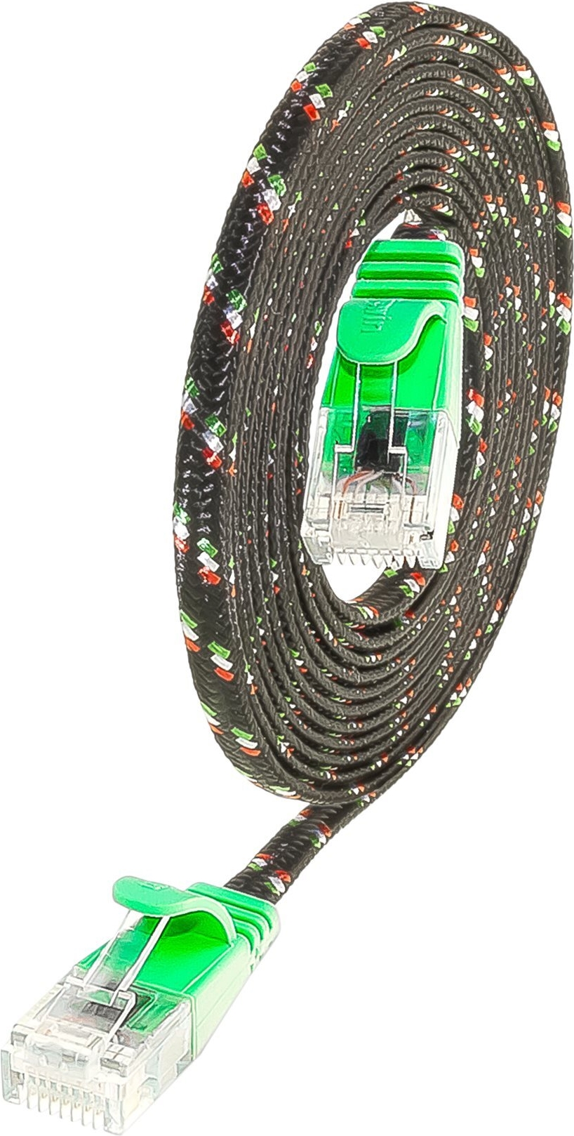 Die TOUGHpatchkabel der Marke SLIM sind eine Lösung für Verkabelungsprobleme verschiedener Art. Obwohl optisch einem Flachbandkabel recht ähnlich, erreichen die TOUGHpatchkabel die Werte der Kategorie 6 und sind somit für 10BASE-T-, 100BASE-TX- und 1000BASE-T Anwendungen, also auch Gigabit Ethernet, geeignet. Dabei haben ganze drei SLIMpatchkabel den Durchmesser eines einzigen handelsüblichen KAT6 Patchkabels. Das Kabel weist trotz der extrem dünnen Bauweise eine Verdrillung der einzelnen Adernpaare auf. Zudem besitzt es einen breiten, flexiblen Klinkenschutz sowie einen praktischen Längenaufdruck an beiden Enden und unterstützt Power over Ethernet (PoE nach IEEE802.3af und IEEE802.3at).