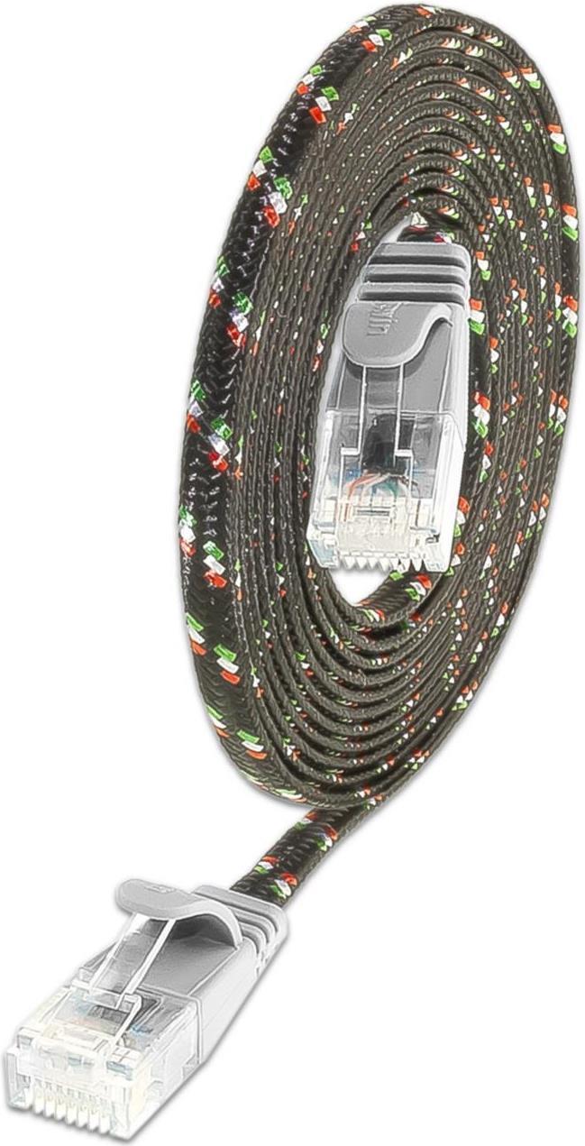Die TOUGHpatchkabel der Marke SLIM sind eine Lösung für Verkabelungsprobleme verschiedener Art. Obwohl optisch einem Flachbandkabel recht ähnlich, erreichen die TOUGHpatchkabel die Werte der Kategorie 6 und sind somit für 10BASE-T-, 100BASE-TX- und 1000BASE-T Anwendungen, also auch Gigabit Ethernet, geeignet. Dabei haben ganze drei SLIMpatchkabel den Durchmesser eines einzigen handelsüblichen KAT6 Patchkabels. Das Kabel weist trotz der extrem dünnen Bauweise eine Verdrillung der einzelnen Adernpaare auf. Zudem besitzt es einen breiten, flexiblen Klinkenschutz sowie einen praktischen Längenaufdruck an beiden Enden und unterstützt Power over Ethernet (PoE nach IEEE802.3af und IEEE802.3at).
