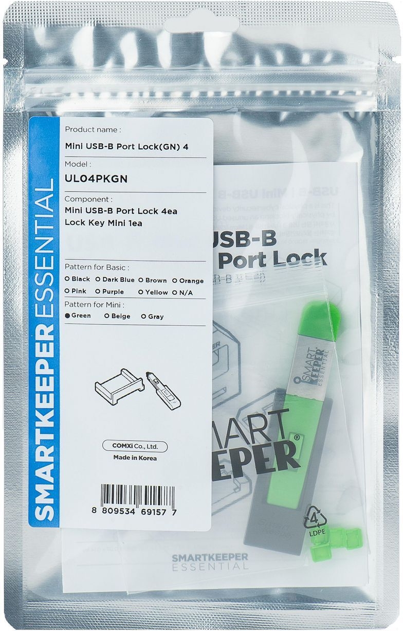 Smartkeeper UL04PKGN Schnittstellenblockierung Schnittstellenblockierung + Schlüssel Mini-USB Type-B Grün Kunststoff 1 Stück(e) (UL04PKGN)