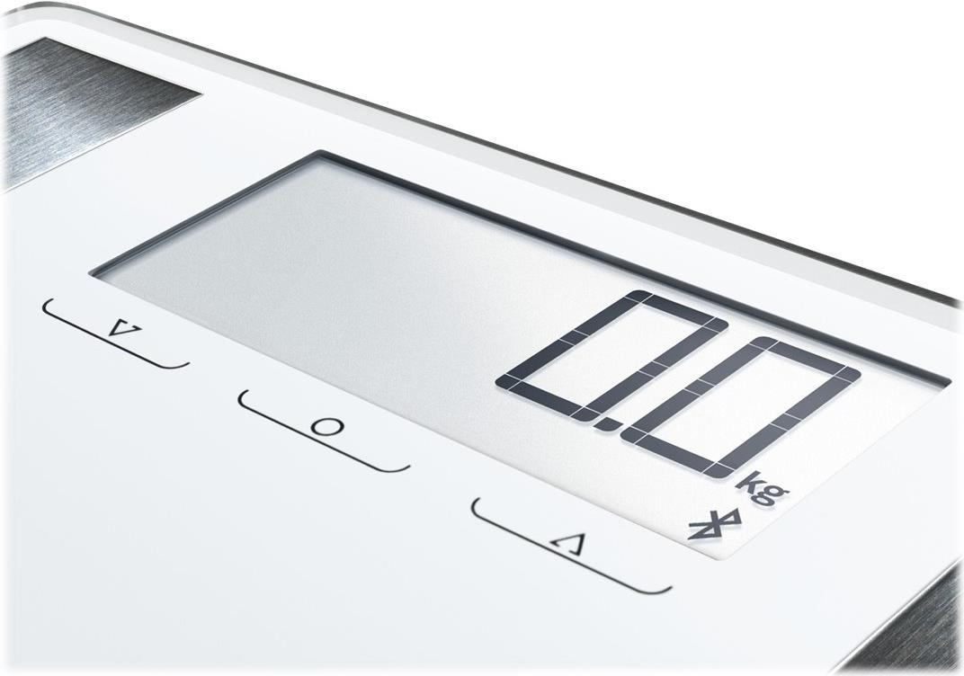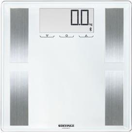 Die Körperanalysewaage Shape Sense Connect 100 mit Bluetooth von Soehnle kann mehr, als nur das Gewicht anzuzeigen. Im Gegensatz zu einer normalen Personenwaage misst dieses Modell alle Körperwerte, die relevant sind für eine detaillierte Auswertung der eigenen Fitness: Körperfettanteil, Muskelmasse, Körpergewicht, Wasseranteil etc. Dies geschieht mittels BIA-Premiummessung. Die professionelle Körperanalysewaage liefert Messwerte wie im Fitnessstudio - dank der Bluetooth -Funktion sogar bequem per App. Die Soehnle Connect-App ermöglicht einen unkomplizierten Überblick über die körperliche Entwicklung während des Trainings. Egal, ob Wunschgewicht, letzte Wiegung oder Abweichungen zum BMI - die Körperanalysewaage Shape Sense Connect 100 mit Bluetooth von Soehnle gibt dank der Bio-Impedanz-Analyse fundierte Hinweise über die Fitness. Das große LCD-Display sorgt für bessere Lesbarkeit der Messwerte auch bei schlechten Lichtverhältnissen. Die Körperanalysewaage Shape Sense Connect 100 mit Bluetooth von Soehnle ist jedoch nicht nur praktisch. Das edle und hochwertige Design, die große Trittfläche und das extrastarke Sicherheitsglas machen sie zu einem optischen Blickfang in jedem Badezimmer. Sie ist geeignet für ein Körpergewicht von bis zu 180 kg und zeigt die Werte in 100-g-Schritten präzise an.