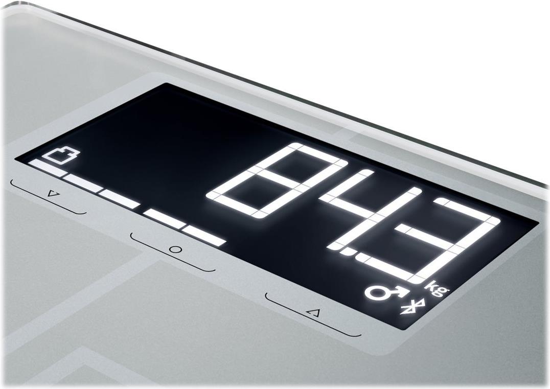 Mit der professionelle Körperanalysewaage behalten Sportler alle relevanten Körperwerte stets im Blick. Seien es der Körperfettanteil, Muskelmasse, Körpergewicht oder Wasseranteil - dank der BIA-Premiummessung gibt es nur exakte Messergebnisse. Diese werden von der Körperanalysewaage Shape Sense Connect 200 via Bluetooth direkt an die Soehnle Connect-App weitergeleitet. Verknüpfungen mit anderen Fitness-Programmen von Google oder Apple sind ebenfalls möglich. Der integrierte intelligente Speicher lässt eine Hinterlegung von Daten von bis zu acht Personen zu. Die Körperanalysewaage Shape Sense Connect 200 via Bluetooth von Soehnle liefert Informationen zum Wunschgewicht, der letzten Wiegung und zum BMI. Die Körperwerte werden mittels vier Elektroden im Rahmen einer Bio-Impedanz-Analyse auf der Trittfläche gemessen. Auf dem beleuchteten XXL-LCD-Display wird eine direkte Auswertung aller Messergebnisse angezeigt. Eine individuelle Einschätzung ist problemlos möglich. Unter anderem durch den Athletenmodus. Dieser gibt Empfehlungen zum eigenen Bedarf basierend auf den Messwerten. Die Körperanalysewaage Shape Sense Connect 200 mit Bluetooth von Soehnle ist anders als andere Personenwaagen. Sie besitzt eine Tragkraft von bis zu 200 kg - und zeigt jedes Ergebnis in 100-Gramm-Schritten präzise an. Das Gerät hat trotz des sowohl flachen als auch kompakten Designs eine sehr große Trittfläche aus Sicherheitsglas. Weiterhin besticht das Modell durch rutschhemmende Standfüße, welche für mehr Standfestigkeit sorgen.