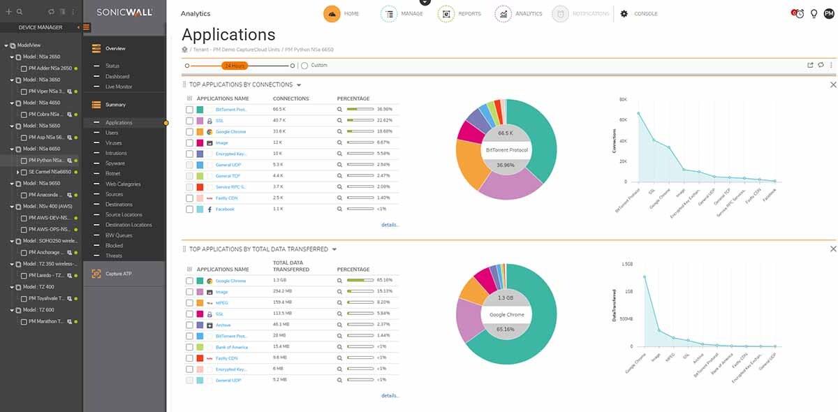 SonicWall Analytics ist ein leistungsstarker, auf Intelligence basierender Analysedienst. Es bietet Echtzeitvisualisierung, -überwachung und -warnung korrelierter Sicherheitsdaten durch eine einzige Konsole. Analtyics bietet Echtzeit-Einblicke und umsetzbare Analysen und befähigt Sicherheitsteams, Analysten und Interessengruppen, Sicherheitsdaten zu entdecken, zu interpretieren und zu priorisieren, um fundierte Entscheidungen zu treffen und geeignete Abwehrmaßnahmen zu ergreifen.