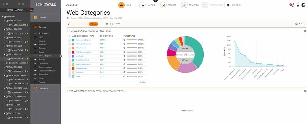 SonicWall Analytics ist ein leistungsstarker, auf Intelligence basierender Analysedienst. Es bietet Echtzeitvisualisierung, -überwachung und -warnung korrelierter Sicherheitsdaten durch eine einzige Konsole. Analtyics bietet Echtzeit-Einblicke und umsetzbare Analysen und befähigt Sicherheitsteams, Analysten und Interessengruppen, Sicherheitsdaten zu entdecken, zu interpretieren und zu priorisieren, um fundierte Entscheidungen zu treffen und geeignete Abwehrmaßnahmen zu ergreifen.