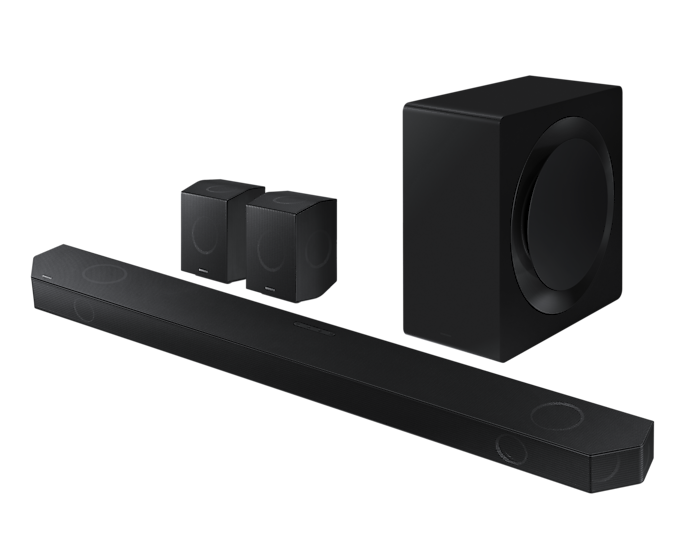 Erhöhen Sie Ihr Heimkinoerlebnis mit dem Samsung HW-Q990D Soundbar-System. Dieses System wurde für Audio-Enthusiasten entwickelt und liefert High-Resolution Audio für kristallklare Klangqualität. Mit einer beeindruckenden Gesamtdauerleistung von 656 W und einer 11.1.4-Kanal-Konfiguration, einschließlich Subwoofer und rückwärtigen Lautsprechern, werden Sie von einem dynamischen, raumfüllenden Klang umhüllt.