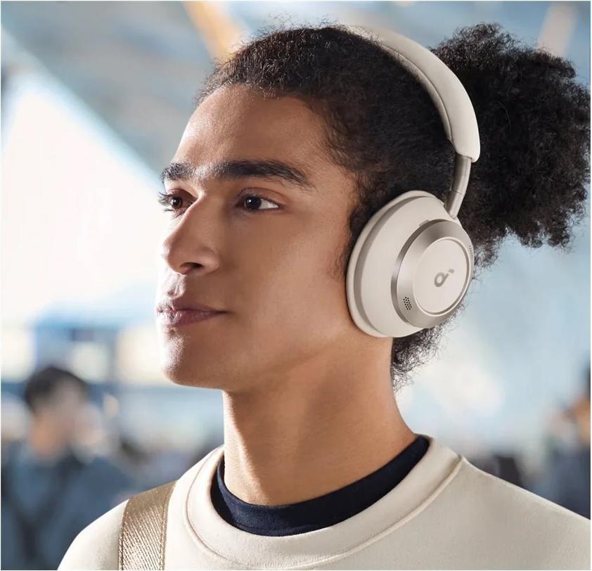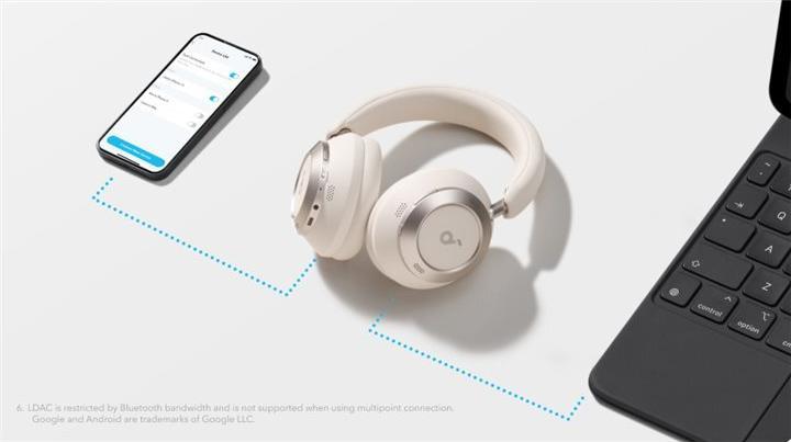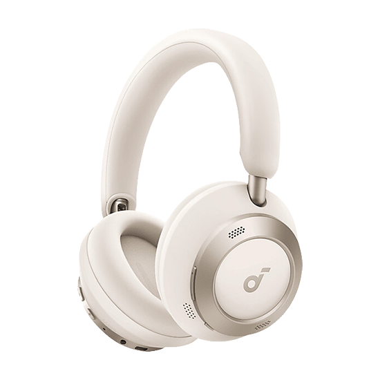 Soundcore Space One Pro - Kopfhörer mit Mikrofon - ohrumschließend - Bluetooth - kabellos, kabelgebunden - aktive Rauschunterdrückung - 3,5 mm Stecker - Cream White (A3062G21) (geöffnet)