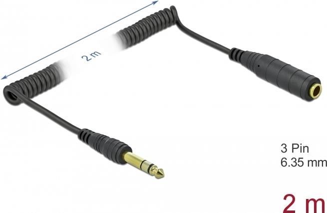 • Delock Spiralkabel Verlängerung 6,35 mm 3 Pin Klinkenstecker zu Klinkenbuchse 2 m schwarz (85938)