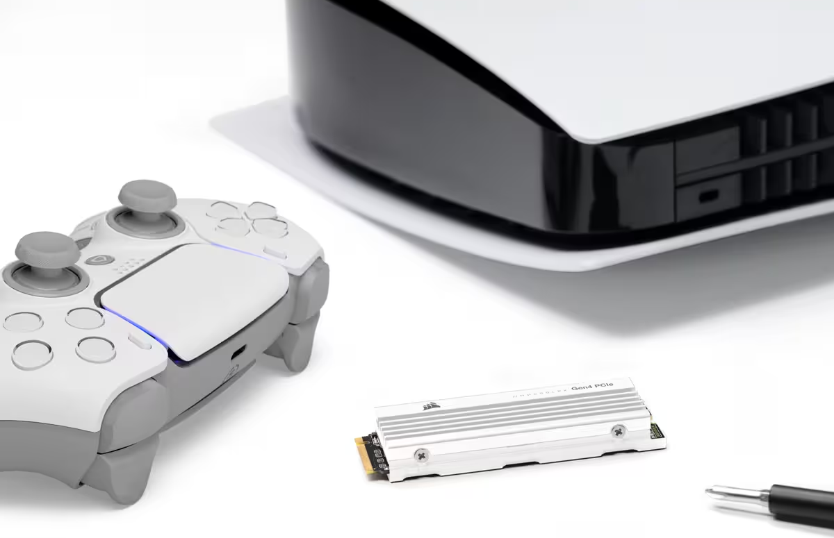 Die CORSAIR MP600 PRO LPX PCIe Gen4 x4 NVMe 1.4 M.2 SSD bietet eine leistungsstarke Speichererweiterung, die für PS5 optimiert ist und den Speicher Ihrer Konsole erweitert.