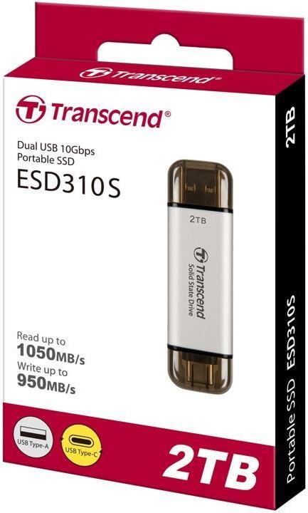 Transcend ESD310 - SSD - 2TB - extern (tragbar) - USB 3,2 Gen 2x1 (USB-C Steckverbinder) - Silber (TS2TESD310S)