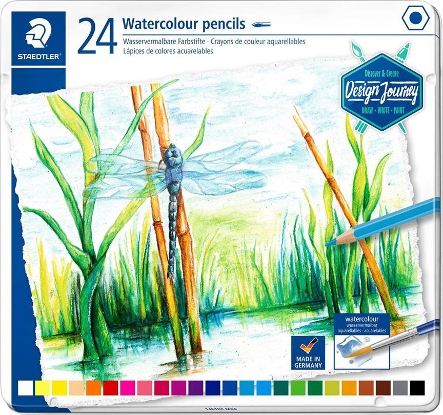 STAEDTLER Aquarellstift Design Journey, 24er Metalletui Sechskantstift, Minenstärke: 2,9 mm, wasservermalbar, - 1 Stück (14610C M24)
