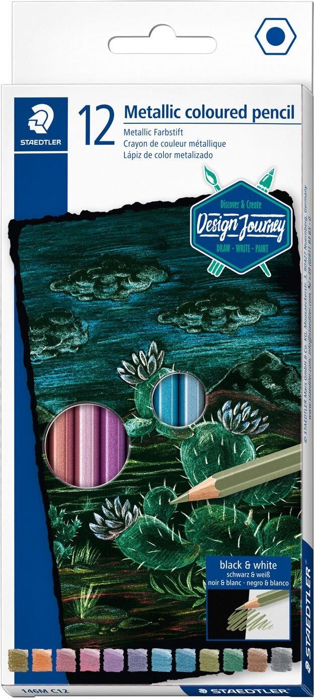 STAEDTLER Buntstife Metallic, 12er Kartonetui sechseckig, für metallisch schimmernde Effekte (146M C12)