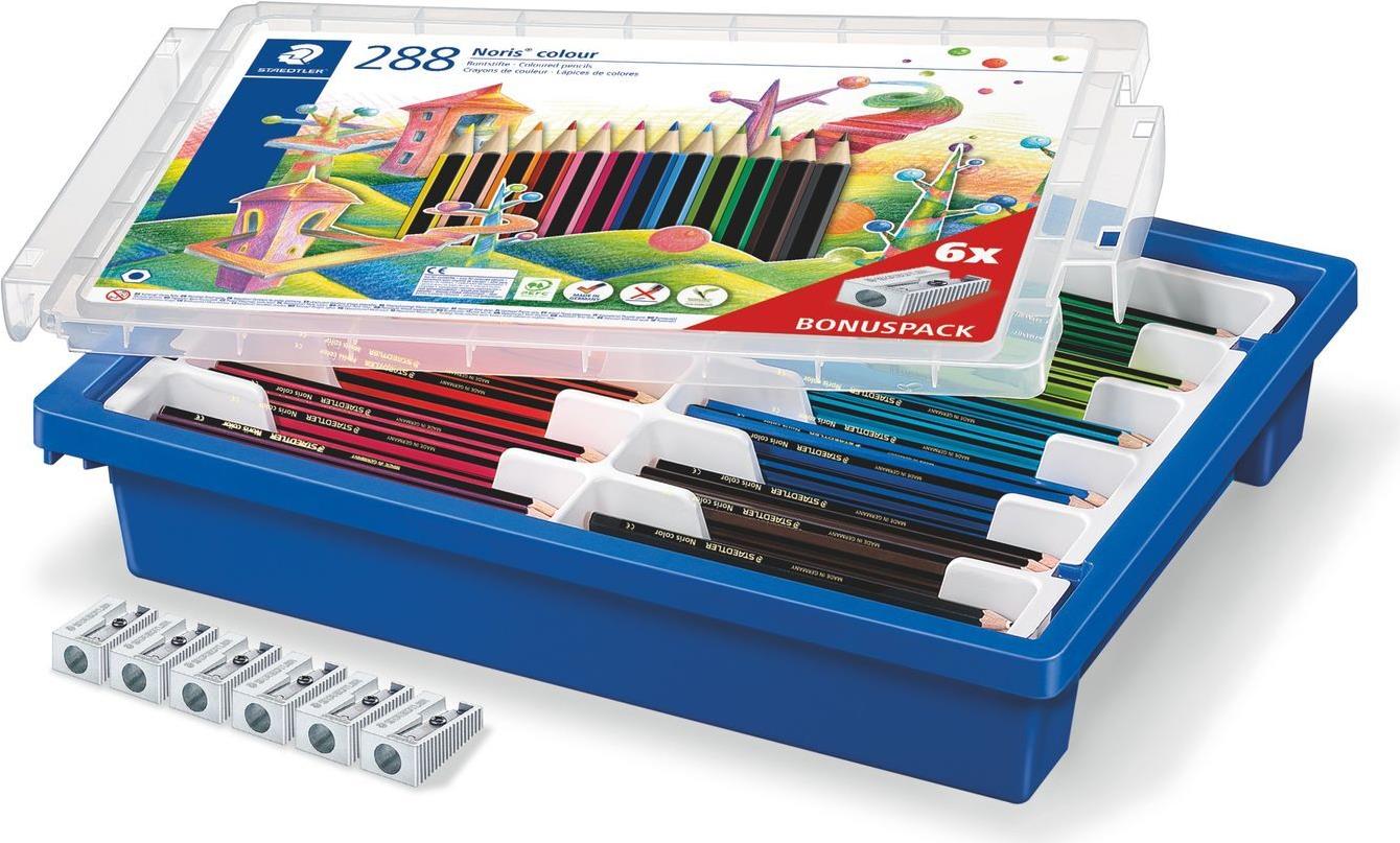 STAEDTLER Buntstift Noris Colour, 288er Kunststoffbox sechseckig, Streifen-Design, ergonomische Soft-Oberfläche, - 1 Stück (185 G288)