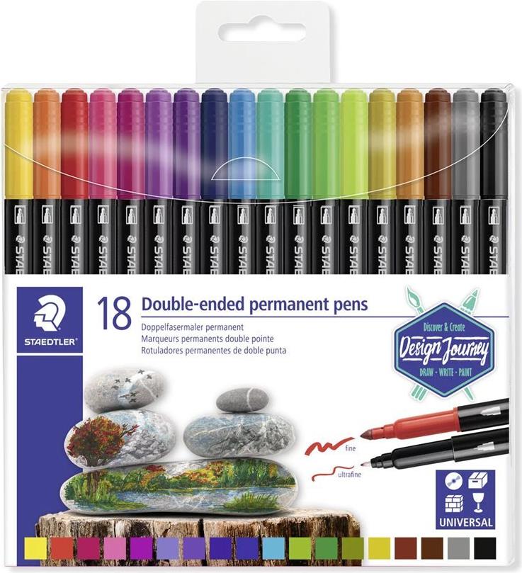 STAEDTLER Doppel-Fasermaler Twin-tip, 18er Kunststoff-Etui 2 Spitzen, Strichstärke: - 1 Stück (3187 TB18)